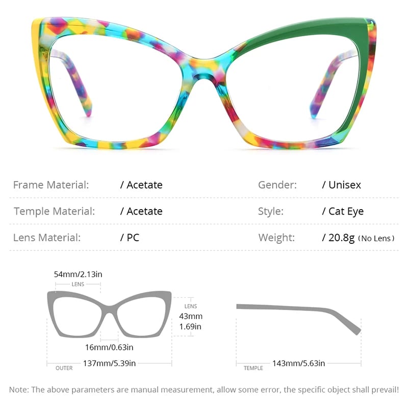 一癖デザインが堪らない個性派メガネ - ファッションコーデの名脇役として - リーディングメガネやPCメガネとして いつもと一味違う、新しい自分を迎えませんか ■Specs ・レンズ材質:Resin ・フレーム材料:Acetate ・ユニセックス ・レンズ交換が可能な仕様です お手元に届きましたら最寄りの眼鏡店で交換してください(当ショップでは度数矯正が出来かねます) ❐レンズ交換がオンラインで完結する「メガネ本舗」 HEPIDEMのメガネで数多くの実績がございます https://bit.ly/4aBKyCV ■Size レンズ横幅:54mm レンズ縦幅:43mm フロント幅:137mm テンプル:143mm 重さ:20.8g ■Color Color Frame Purple Frame Red Frame Black Frame ■Option ①ブルーライトカットレンズへ変更できます ・遮光率:95%(385nm≪λ<505nm) ・インデックス:1.56 ②UVカットレンズへ変更できます ・カラー:Blue / Gray / Pink / Purple / Brown ・レンズの光学属性:UV400 ・インデックス:1.56 ③調光レンズ(フォトクロミックレンズ)へ変更できます ・カラー:Gray / Brown ・レンズの光学属性:UV400 ・インデックス:1.56 ■Delivery time 当ショップの商品は海外より取寄せ・発送となる為、 ご入金から10~20日前後でお届けいたします 【ご購入前にこちらを必ずお読み下さい】 https://hepidem.theshop.jp/about ・HEPIDEMの人気Ranking◆ https://hepidem.theshop.jp/categories/6037747 ・当店Instagram https://www.instagram.com/hepidem_japan/ 【選べる支払い方法】 ▷決済手数料ゼロで一番お得 ・クレジットカード決済 ・Amazon Pay ▷後払いで安心決済 ・あと払い Pay ID ▷お支払い手数料300円 ・キャリア決済 (docomo/au/Softbank/Y!mobile) 〔留意事項〕 ・商品の色味は、撮影方法・光の加減・お手持ちのパソコン・スマートフォンの画面設定によって実物と若干異なる場合がございます ・商品在庫切れにより注文キャンセルとさせていただく恐れもございますので、予めご了承ください ・イメージ違いやサイズ交換等、お客さまご都合による交換、返品は対応出来かねます 管理番号:0065
